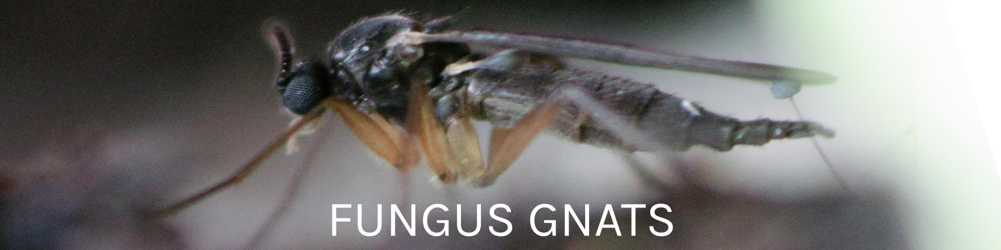 Fungus gnats, or soil flies, belong to a separate family (Sciaridae) inside the mosquito group. Fungus gnats are very common and sometimes become pests in young plants or mushroom growings. Adult fungus gnats usually stand out as ’dancing’ black flies hovering over the potting soil. Contaminations usually occur through fresh potting soil, which houses larvae or eggs. Fungus gnat larvae eat plant roots.