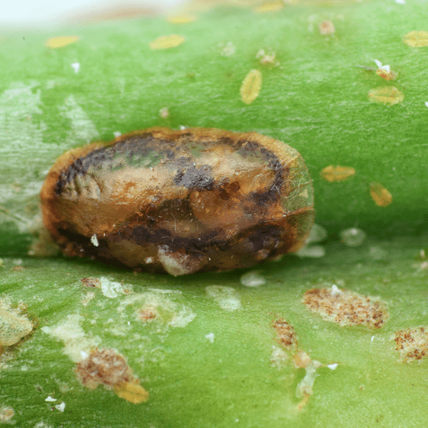 The product MICROTERYS NIETNERI contains a parasitoid specialized in the biological control of brown soft scale (Coccus hesperidum). Since it is such a specialist; this parasitoid will not accept hosts other than brown soft scale. The 2 mm big female parasitoids are yellow-brown with a clearly visible black and white checkered pattern on the wings and antennae. Males are black and substantially smaller than females.