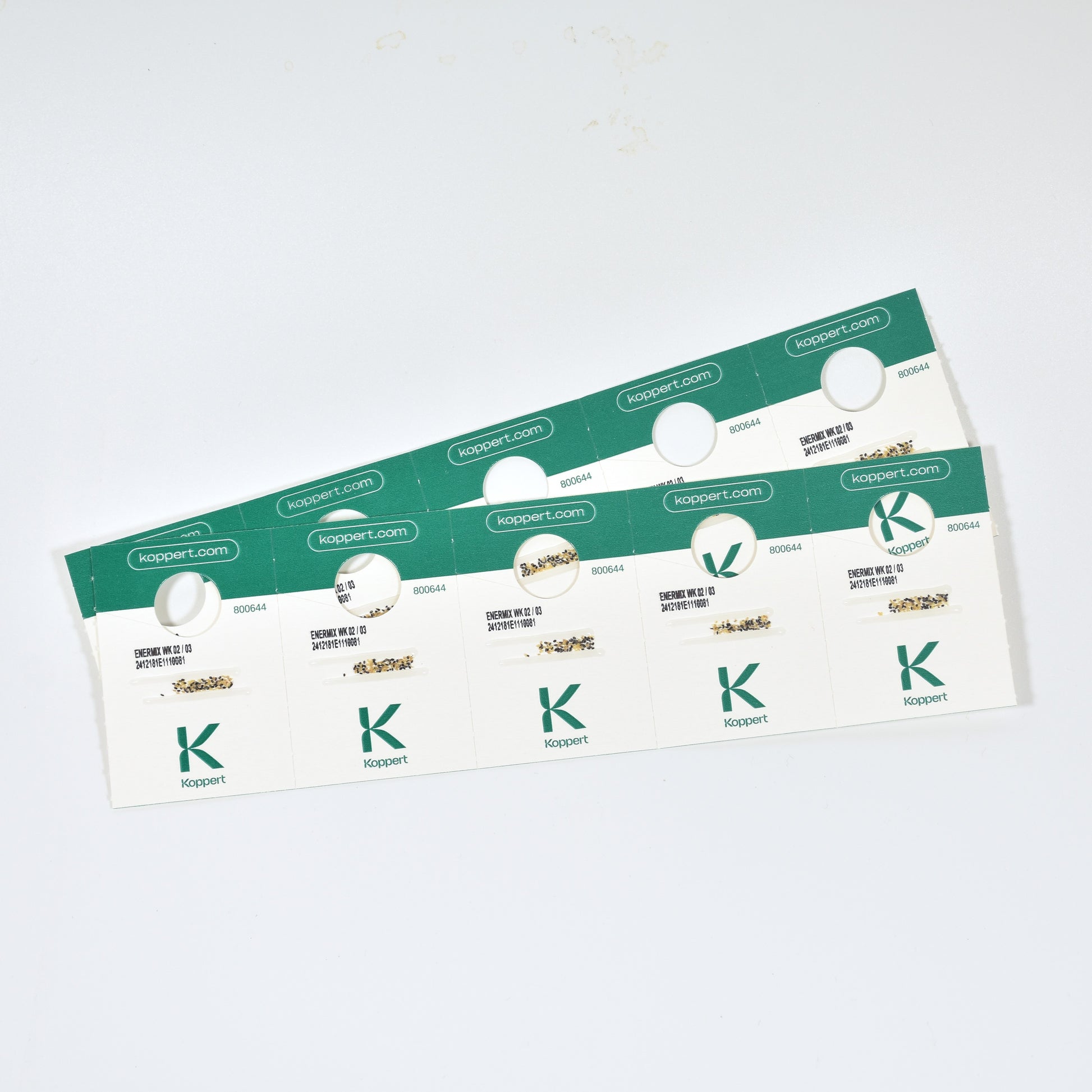 ENERMIX is a combination of two parasitoid species which are commonly used for the biological control of whitefly. They are effective against both greenhouse- and tobacco whitefly. The product is suitable especially for use in greenhouses. Particularly at high temperatures, ENERMIX is a good choice. The pupae of the parasitoid are available per 10 strips (50 cards with 3000 pupae) or 50 strips (250 cards with 15000 pupae) for business customers. For private customers we have a smaller unit of two strips (10 cards with 600 pupae).