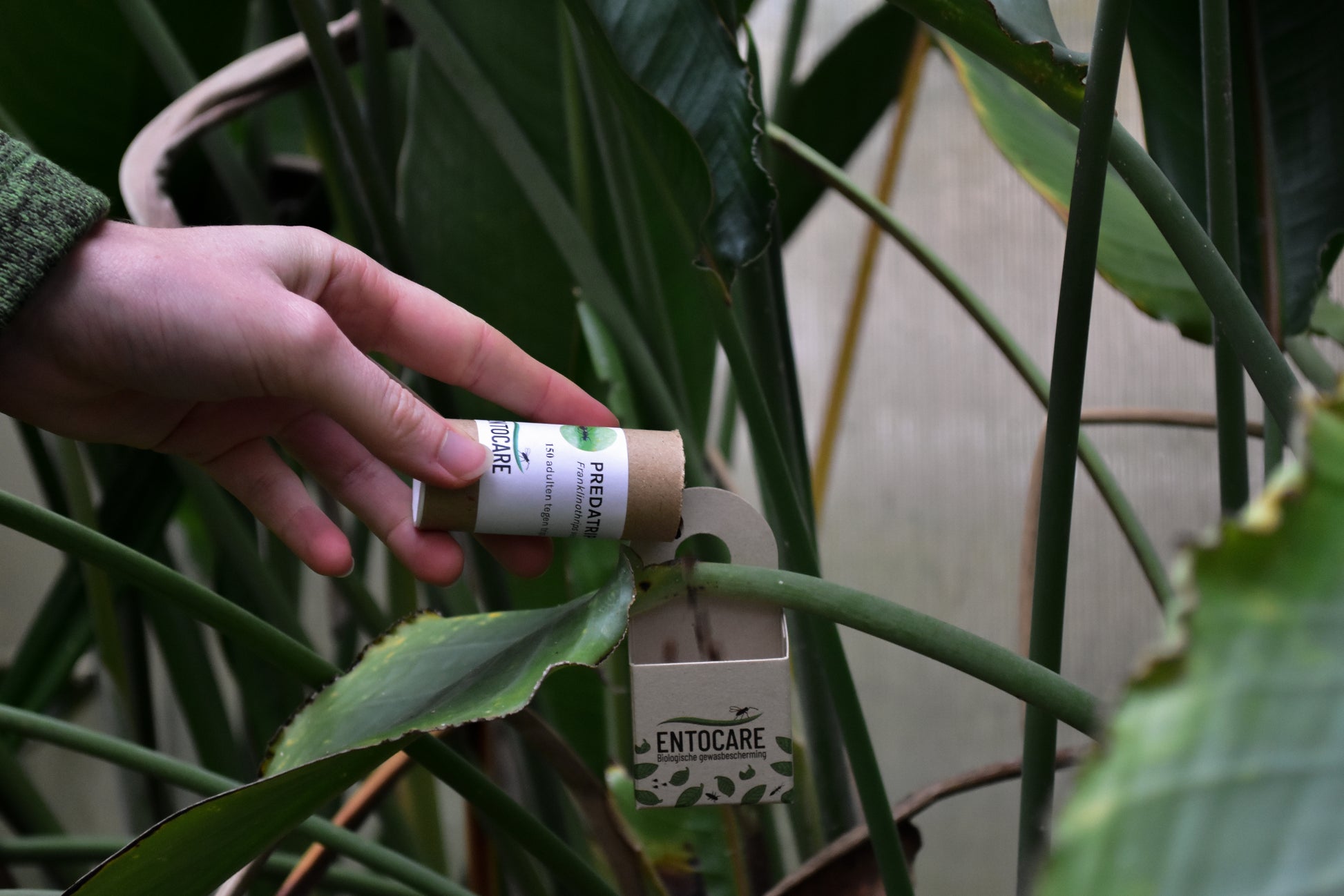 Soms staan er in een binnentuin plantensoorten die weinig horizontaal blad hebben of wat kale stengels. In dat geval is het ook handig om de ENTOBOX te gebruiken. Op die manier kun je voorkomen dat het product bij het uitstrooien op de grond terecht komt. Je kunt dit bijvoorbeeld toepassen bij roofmijten die in een bus geleverd worden zoals THRIPEX en SPIDEX VITAL.