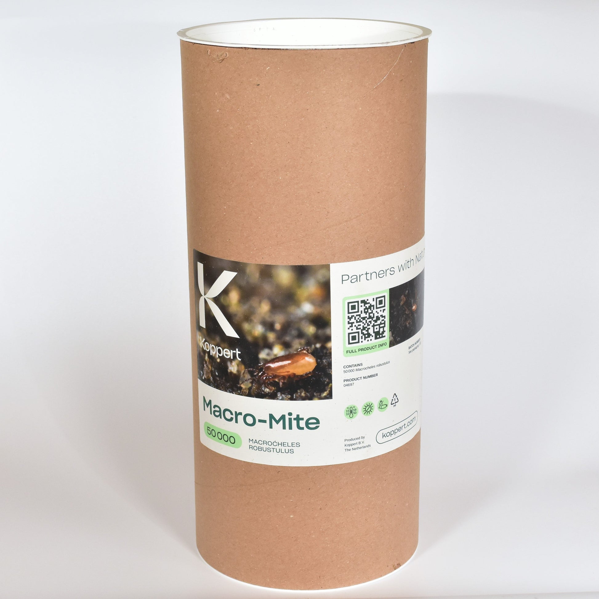MACRO-MITE is a predatory mite that occurs mainly in the soil. It can be used for the biological control of thrips eggs and pupae, fungus gnat eggs and pupae and pot worms. MACRO-MITE is available in units of 50.000 predatory mites and is packaged in a carton container with vermiculite and soil.