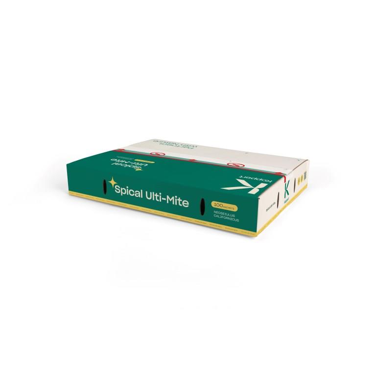 SPICAL ULTI-MITE are small sachets that contain the predatory mite Neosieulus californicus. They are white-brown; drop-shaped mites on short legs. The mites are very mobile and are often found on the underside of leaves. They prey on several mite species; such as spider mite; citrus mite; broad mite and cyclamen mite. SPICAL ULTI-MITE sachets are made of 100% compostable material. Therefore; the bags can be disposed together with plant waste. The sachets are designed in such a way that the development of the predatory mites is stimulated.